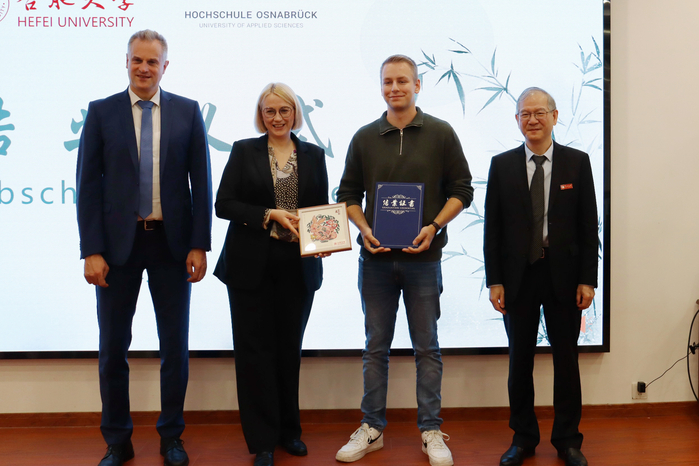 王其東代表學校對卡塔琳娜·普特市長一行表示熱烈的歡迎,對徽文化秋令營的成功舉辦表示祝賀。他表示,此次交流中德學生建立起深厚情誼,為日后攜手書寫兩校友誼新篇章打下堅實基礎,為雙方未來教育、經濟、文化發展注入了生機與活力。奧斯納布呂克應用科學大學校長亞歷山大·施梅曼先生在致辭中感嘆中國發展速度之快,同時也很高興看到合肥大學的高速發展變化,希望通過更多形式的交流活動來加深兩校友誼,深化合作與發展。德國奧斯納布呂克應用科學大學的學生代表伊爾薩比·拉德馬赫分享了在合肥大學交流期間的體驗與感悟,并表示會銘記這段美好回憶。