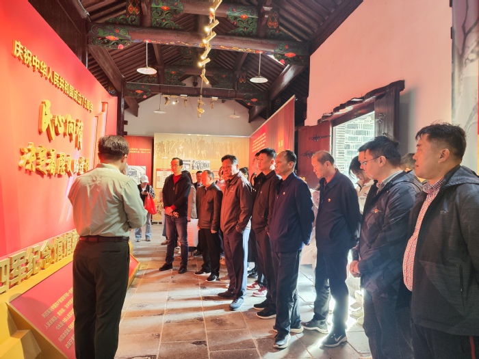 在講解員的帶領(lǐng)下,大家有序進(jìn)入展廳,共同踏上了一條探尋新四軍輝煌壯闊歷史的征程。展覽共分為“民族危急 鐵軍出山”“為民浴血 英勇抗戰(zhàn)”“踐行初心 改善民生”“人民戰(zhàn)爭 奪取勝利”四個(gè)部分。黨員們在參觀過程中不時(shí)駐足凝視,認(rèn)真聆聽講解。通過一件件珍貴的革命文物展品,生動(dòng)再現(xiàn)了新四軍為新中國誕生所歷經(jīng)的艱難險(xiǎn)阻以及他們?nèi)〉玫妮x煌戰(zhàn)果,充分彰顯了新四軍為黨和人民事業(yè)立下的不朽功勛,黨員們也深切體會(huì)到新四軍將士們?yōu)槊褡濯?dú)立和人民解放事業(yè)所做出的巨大犧牲與不懈努力,內(nèi)心深受觸動(dòng)。