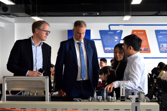 Wang Qidong begleitete Alexander Schmemann und sein Gefolge bei der Erkundung der Fakult?t der Energie, Materialien und Chemical Engineering und das Volkswagen Institut.