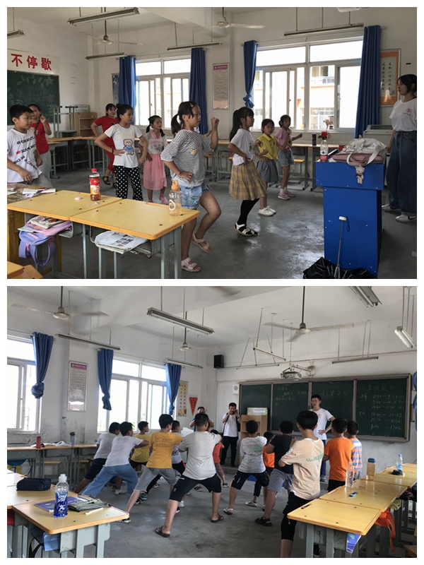 8月15日,文傳學院輔導員劉政帶領19名文傳學子赴六安市丁集鎮丁集學校進行“三下鄉”暑期實踐活動。同學們積極備課,準備教案,細化招生方案,做好“三下鄉”實踐工作的每一步。志愿者們結合專業特點,把參與支教的同學們分為語文班、武術班、歌舞班、書畫班。四個課程小組各出奇招,用有趣又親切的互動快速而有效地拉近了志愿者與孩子們的距離,為課程的開展營造了友善歡快的氛圍。筑夢者愛心支教團隊在多媒體教室開展了安全教育講座,讓安全警鐘長鳴于每一位同學心中。志愿者們結合專業所長,開展手機攝影攝像專題培訓,鍛煉了專業實踐能力。