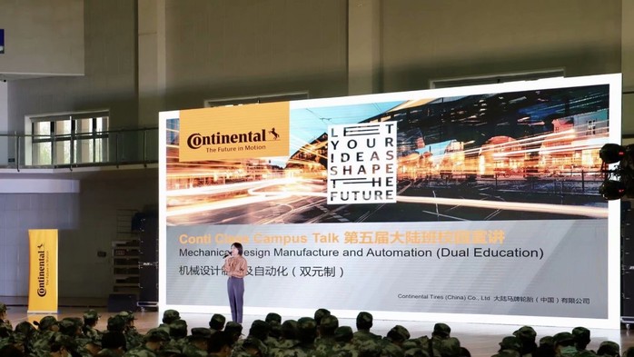 2020級大陸班招新宣講會于9月22日在合肥學院體育館正式舉行。大陸馬牌輪胎(中國)有限公司人力資源總監孫怡、大陸集團合肥工廠招聘經理劉喬松、大陸集團產品工業化部總監Kumar,我校國際交流合作處副處長張慧、先進制造工程學院院長呂剛、雙元制大陸班專業負責人張光洲等人參加了本次活動。