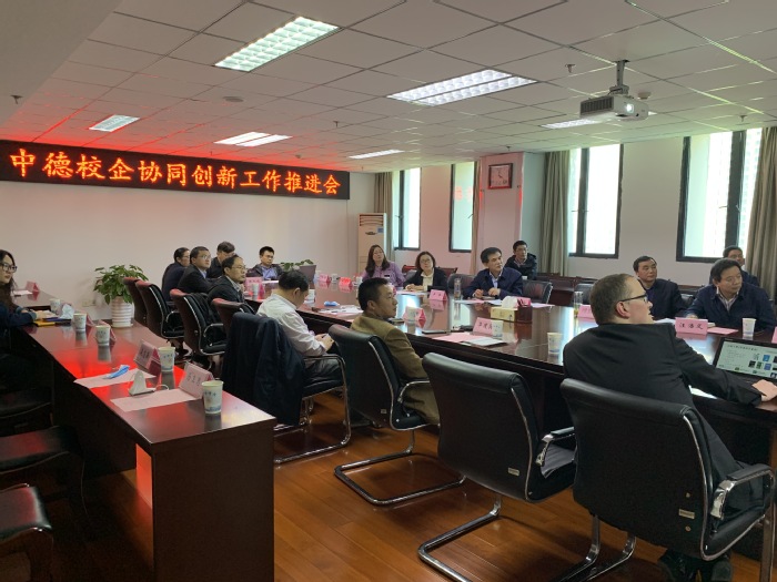 我校中德校企協同創新工作推進會于4月28日下午在行政樓八樓東會議室召開。合肥學院副校長盧平出席會議,發展規劃處處長繆群道、科技處處長汪潘義、中德教育合作示范基地(基金)管理辦公室主任劉金平,以及中德生物質研究中心(安徽)、中德固體廢棄物研究協同創新中心、中德先進制造業促進中心、綠色助劑技術創新中心等中德合作機構負責人參加會議。會議由中德校企協同創新中心主任李長花主持。