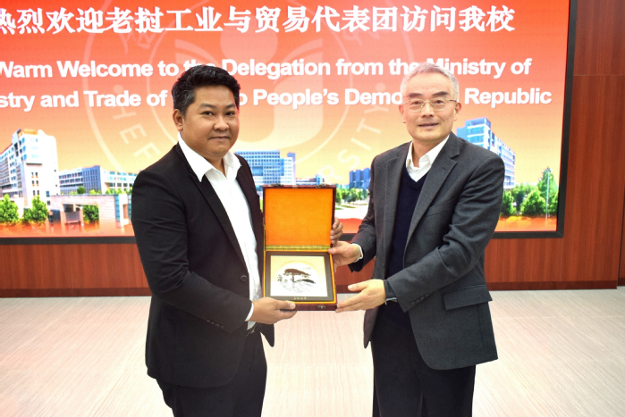 鄔平川對老撾工業與貿易部代表團的來訪表示熱烈歡迎。他在致辭中簡要介紹了合肥大學的發展歷程、辦學特色和我校與老撾方面的交流與合作,并對來自老撾的留學生給予了高度的贊揚。他表示,期待此次代表團的來訪能夠進一步拓展合肥大學與老撾在人才培養、學術交流和校企合作等領域的深度合作,讓教育交流與經濟合作同頻共振,讓中老友誼在新一代青年手中薪火相傳。