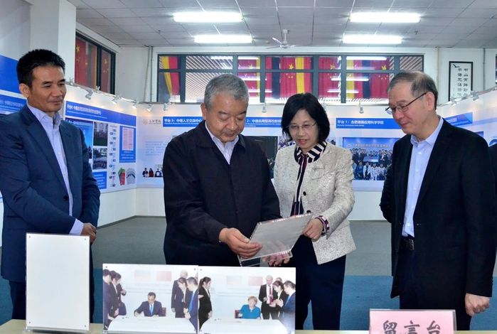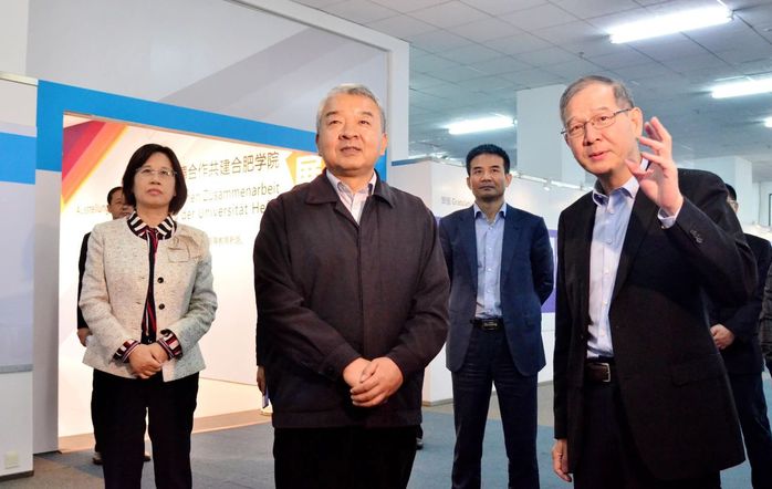 在參觀中德共建合肥學(xué)院30周年成果展的過(guò)程中,王其東介紹了我校的基本情況,我校始終堅(jiān)持“地方性、應(yīng)用型、國(guó)際化”的辦學(xué)定位,近些年大力開(kāi)展教育改革,對(duì)標(biāo)地方產(chǎn)業(yè)發(fā)展需求,加強(qiáng)校企合作,深入推進(jìn)產(chǎn)教融合,實(shí)現(xiàn)產(chǎn)學(xué)研合作育人,培養(yǎng)應(yīng)用型人才,服務(wù)地方經(jīng)濟(jì)社會(huì)發(fā)展。同時(shí)廣泛開(kāi)展國(guó)際合作,探索“雙元制”人才培養(yǎng)模式,不斷提高人才培養(yǎng)質(zhì)量,構(gòu)建起具有鮮明特色的應(yīng)用型人才培養(yǎng)體系。
