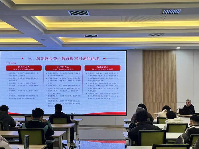 1月6日,校黨委書記鄔平川以“深學細悟習近平總書記關于教育的重要論述 以教育家精神鑄魂強師”為主題,為全體新入職教師作專題講座。
