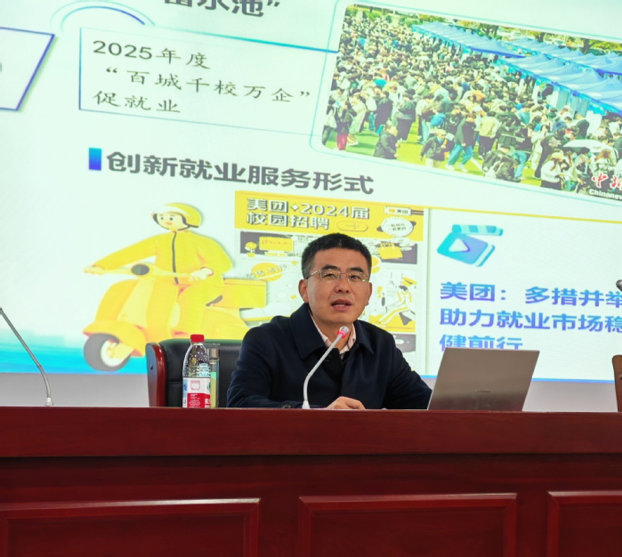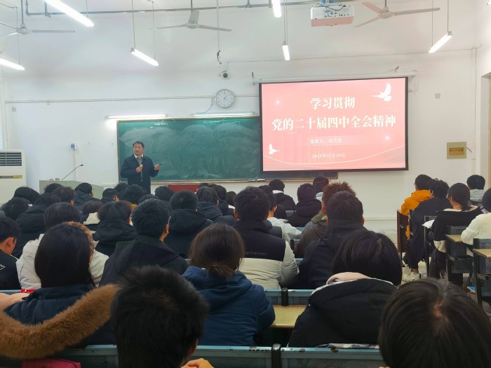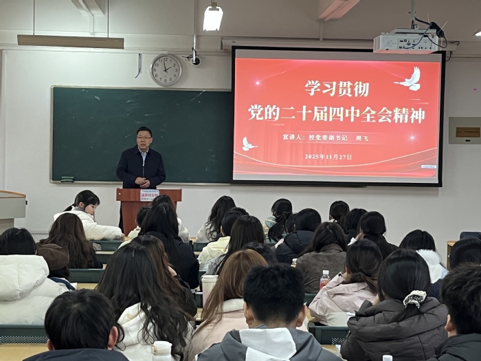 2025年11月27日,校黨委副書記周飛為2025級漢語言專業學生授課,他從重大意義、核心要義、實踐要求等維度解讀黨的二十屆四中全會精神,結合“激發全民族文化創新創造活力”戰略部署與專業特性,闡釋“高質量發展”“科技自立自強”等關鍵詞背后的中國式現代化內涵,鼓勵學生立足專業傳承中華優秀傳統文化,在文化創新、鄉村振興等領域主動作為。