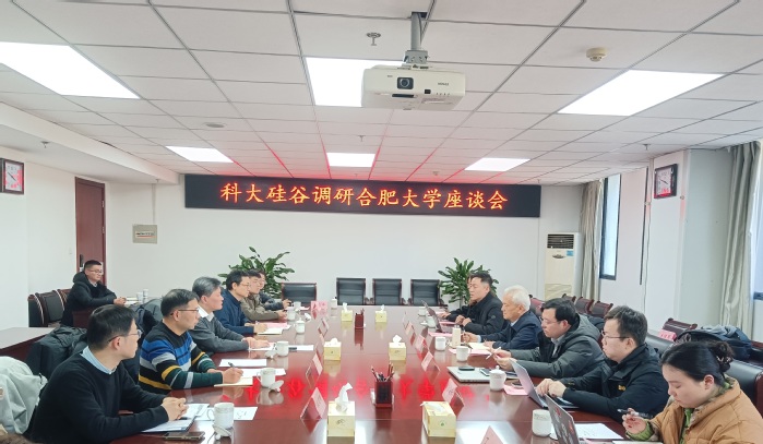 合肥市場景公司副總經理張弼、科大硅谷成果轉化中心、合伙人生態中心、企業(人才)服務中心及學校科研處、各理工科二級學院相關負責人參加調研座談。