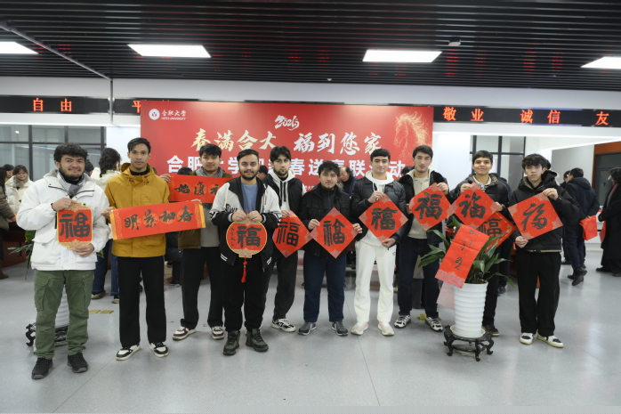 活動現(xiàn)場福字斗方貼滿角落,福字掛飾高高掛起,紅色聯(lián)紙整齊鋪展,硯中墨汁充盈飽滿,喜慶的氛圍感染著每一位到場人員。教職工們其樂融融,沉浸春聯(lián)創(chuàng)作與春聯(lián)欣賞的樂趣之中,這些散發(fā)著清新墨香的春聯(lián),寄托著教職工們辭舊迎新、接祥納福的共同心聲,傳遞出美好的新年祝愿和昂揚向上的精神面貌。活動還吸引了國際教育學(xué)院外國留學(xué)生的參與,他們好奇地詢問“馬到成功”“龍馬精神”等吉祥話語的寓意,認(rèn)真聆聽“福”字承載的美好期盼,在輕松的互動中感受中國年俗文化的深厚底蘊。