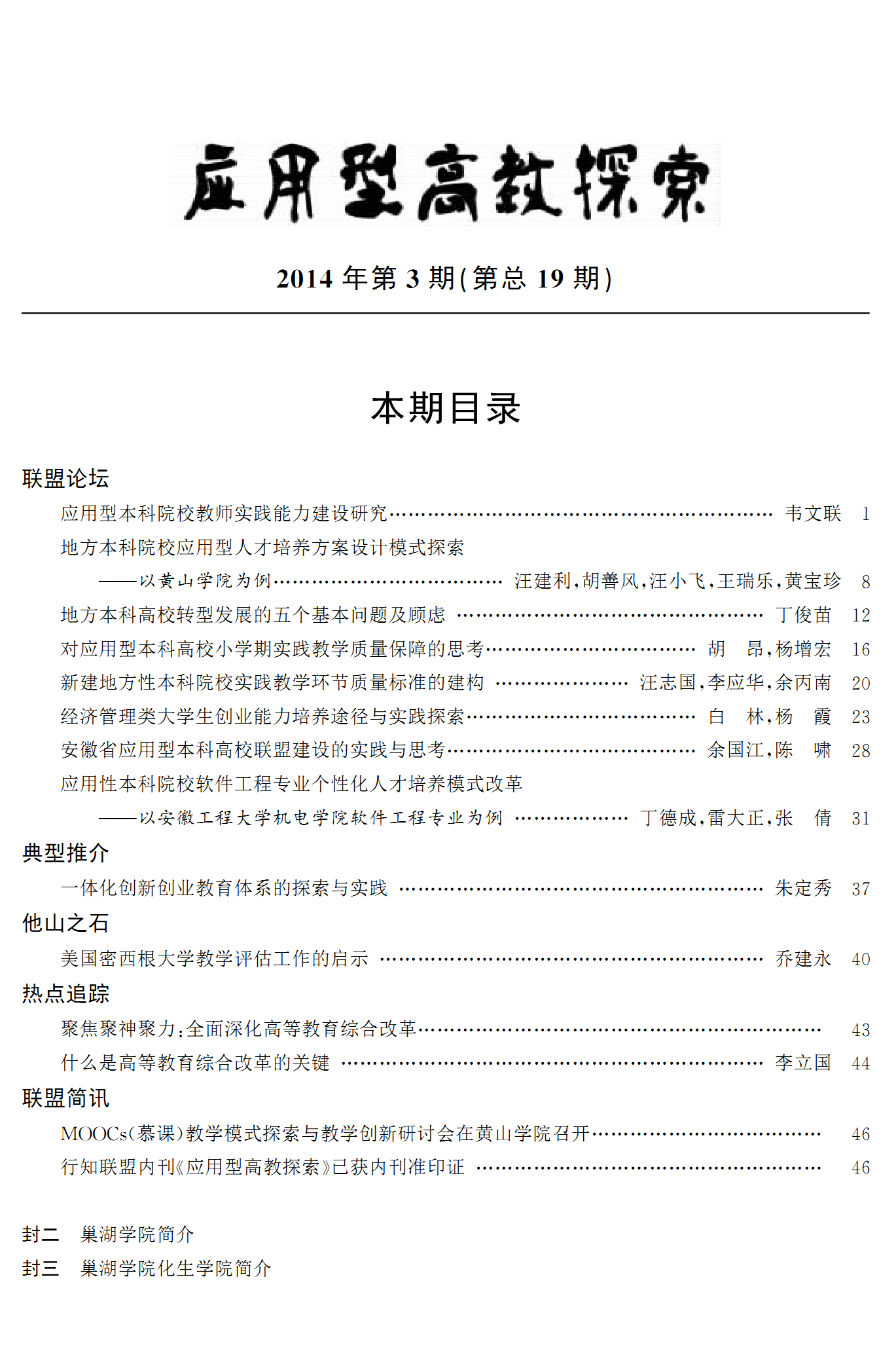 《應用型高教探索》2014年第 3 期(總第19期)已編發,具體內容請查閱發展規劃處網站http://www.jnmotel.com/s/85/t/330/p/6/c/7087/list.htm。