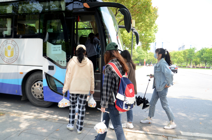 真情護(hù)送,有他們一路相伴。“師傅,你吃飯了嗎?”“我自己帶了飯,已經(jīng)在車上吃好,這樣既省時間,又不耽誤你們。” 像這樣暖心的對話時常在擺渡車上發(fā)生。而提到擺渡車,同學(xué)們似乎都有著說不完的話。19級中德物流專業(yè)的黃典誠這樣說:“擺渡車的開設(shè)有效解決了封校后兩校區(qū)同學(xué)們的往來問題,讓已然無法見面的同學(xué)們又重新架起了溝通的橋梁,實(shí)現(xiàn)了從‘線上’到‘線下’的轉(zhuǎn)變。”言談之中,同學(xué)們的臉上都洋溢著喜悅,這不僅是對擺渡車的肯定,更是對學(xué)校疫情防控工作的認(rèn)可。