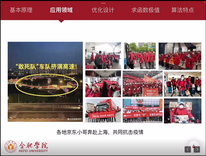 在先進制造工程學院的謝宇老師看來,如果授課的出發點是“為了課程思政而課程思政”,那么思政元素的展現就會很生硬,不僅達不到效果,還會影響正常教學效果。謝宇本學期教授的是《智能控制》,在《遺傳算法》這一節課中,他將遺傳算法與“各地京東小哥奔赴上海,共同抗擊疫情”這一熱點話題相結合,和同學們一起探討京東如何運用大數據使上海附近的各個倉儲點運輸的物資達到均衡狀態,同時,他將萬眾一心、同舟共濟、守望相助的抗“疫”精神融匯在知識傳授當中,達到了“潤物細無聲”的育人效果。
