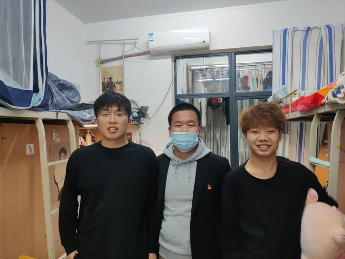 圖為19級(jí)支部成員舒昊在2021級(jí)學(xué)生寢室傳授網(wǎng)課學(xué)習(xí)經(jīng)驗(yàn)和心理調(diào)適方法