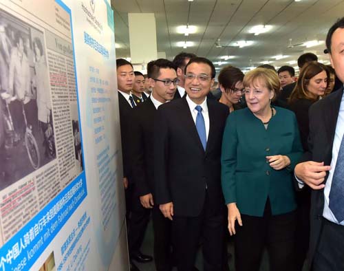 但10月30日上午,兩國(guó)總理卻不約而同地稱之為中德合作的成功典范。在該校圖書館舉辦的“中德共建合肥學(xué)院三十周年展覽”上,李克強(qiáng)在留言冊(cè)上寫下“三十而立、卓有成效、根深葉茂”的期望。默克爾則連連祝其生日快樂,還留言“我祝愿獲得更大成就”。