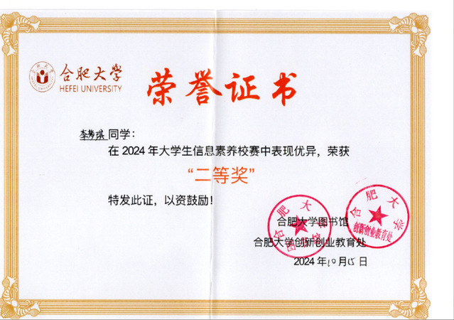 李夢琪始終認為,學習不應局限于課堂,競賽是驗證知識與鍛煉能力的重要途徑。課余時間,他積極參加各類學科競賽,將所學知識與實踐相結合,在不斷挑戰自我中收獲成長。