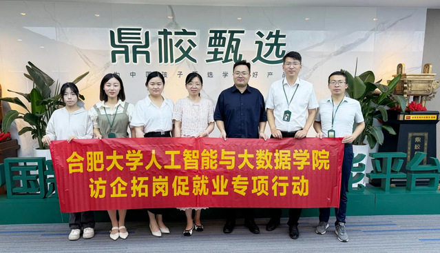 2025年7月10日,為幫助畢業生拓展更多實習、就業渠道,促進校企合作共贏。合肥大學人工智能與大數據學院黨委副書記姚蓓蓓一行赴安徽鼎校教育科技有限公司開展“訪企拓崗促就業專項行動”,安徽鼎校教育科技有限公司全國交付運營中心總經理姜思衛、高校合作部項目經理趙研、袁國詔等人進行了熱情接待。