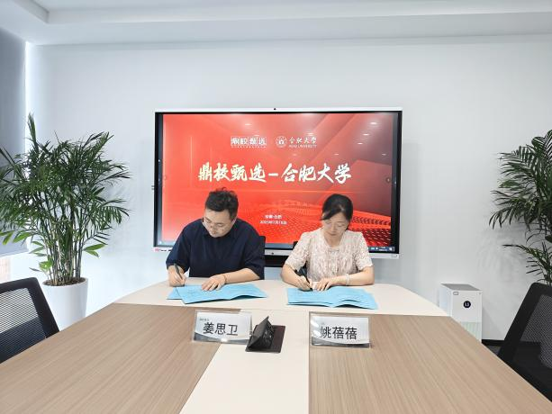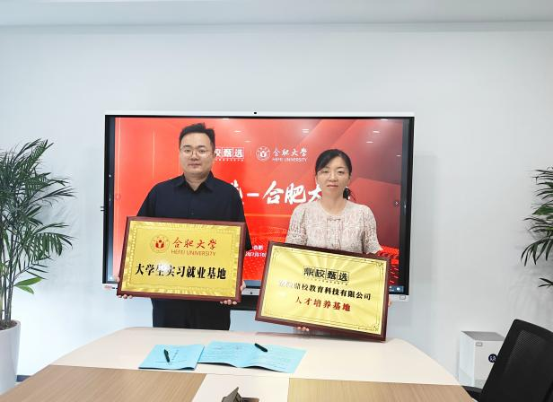 在雙方的共同見證下,安徽鼎校教育科技有限公司與合肥大學人工智能與大數據學院正式簽署實習基地合作協議,并舉行授牌儀式,合影留念。