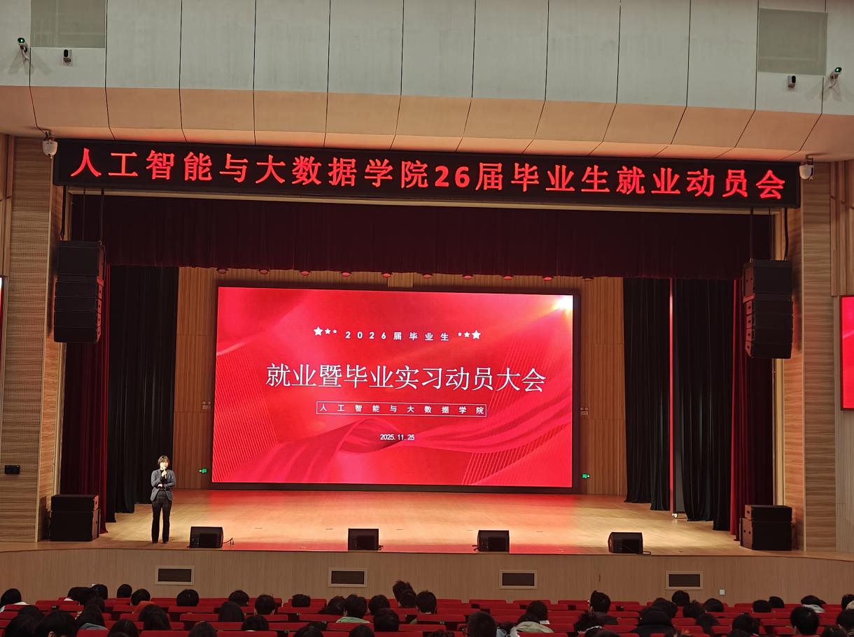 本次2026屆畢業生就業動員會的成功舉辦,不僅為學院的就業指導工作提供了堅實的基礎,也為廣大畢業生指明了前進的方向,激發了他們的就業熱情和信心。人工智能與大數據學院將持續關注并全力支持2026屆畢業生的就業工作,助力他們開啟嶄新的人生篇章。