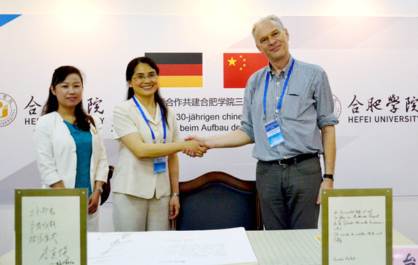 會上,瓦歇爾教授圍繞“準穩(wěn)態(tài)”進行學術(shù)報告,討論了參數(shù)依賴多項式常微分方程模型的化學反應(yīng)網(wǎng)絡(luò)。在參觀我校中德合作共建三十周年成果展中,他表示,中徳兩國合作成果豐碩,教育教學的研究更是卓有成效,合肥學院三十年的中徳合作歷史尤為重要,為兩國合作做出重大貢獻。他還指出合肥學院的發(fā)展日新月異,并希望能夠與合肥學院繼續(xù)加強交流,加深在學術(shù)研討方面的探索。