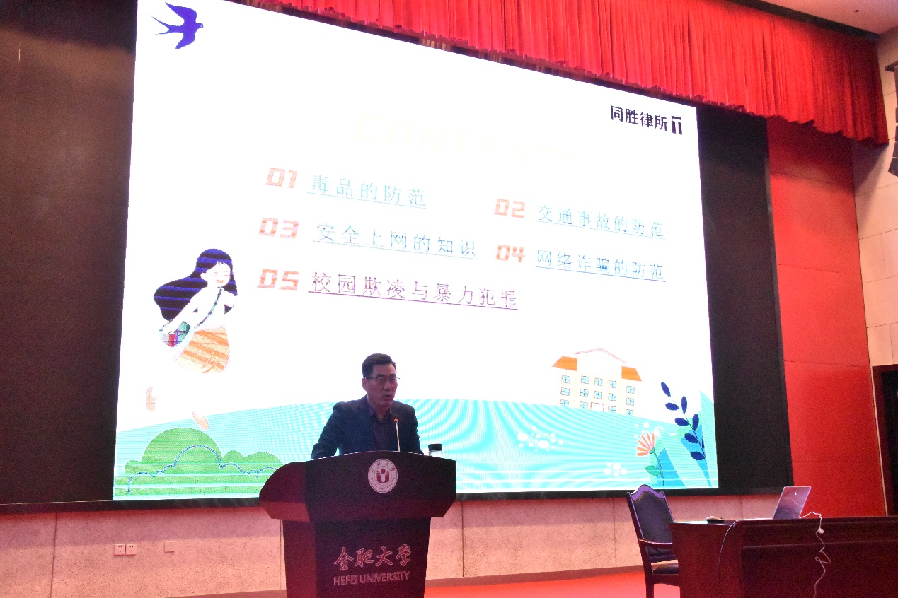為增強(qiáng)高校大學(xué)生安全意識(shí),普及法律知識(shí),2024 年 10 月 17 日中午,合肥大學(xué)先進(jìn)制造工程學(xué)院在圖書館 A 報(bào)告廳舉辦大學(xué)生安全教育主題講座,同勝律師事務(wù)所律師陳西良擔(dān)任主講人,學(xué)院2024級(jí)新生聆聽講座。