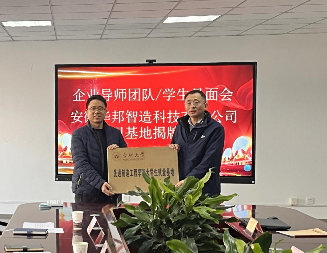 賈代發介紹了安徽華邦智造科技有限公司發展概況,讓與會人員對企業的發展歷程、技術成果和企業文化有了深入了解。緊接著,舉行了就業實習基地授牌儀式,這標志著雙方在人才培養和實習就業方面的合作邁出了堅實的一步。該基地將為先進制造工程學院的學生提供更多的實習機會和實踐平臺,幫助學生更好地將理論知識與實際應用相結合,提高就業競爭力。授牌儀式后,企業導師、學生以及參會人員進行了合影留念。
