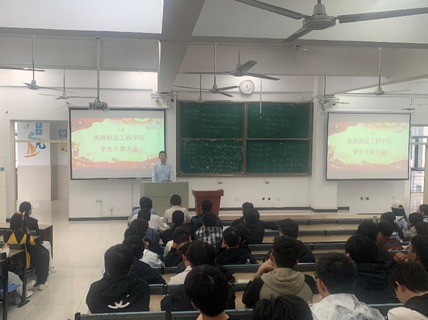 為進一步強化學生干部責任意識,凝聚班級管理合力,推動學院學風建設與安全工作落地見效,10 月 16 日,先進制造工程學院在38棟階梯教室召開全院學生干部大會。會議由院黨委副書記蔡靈美主持,院黨委書記宣躍文出席會議,全體輔導員和各班班長、學習委員、團支書、思政委員、心理委員等學生干部參會。