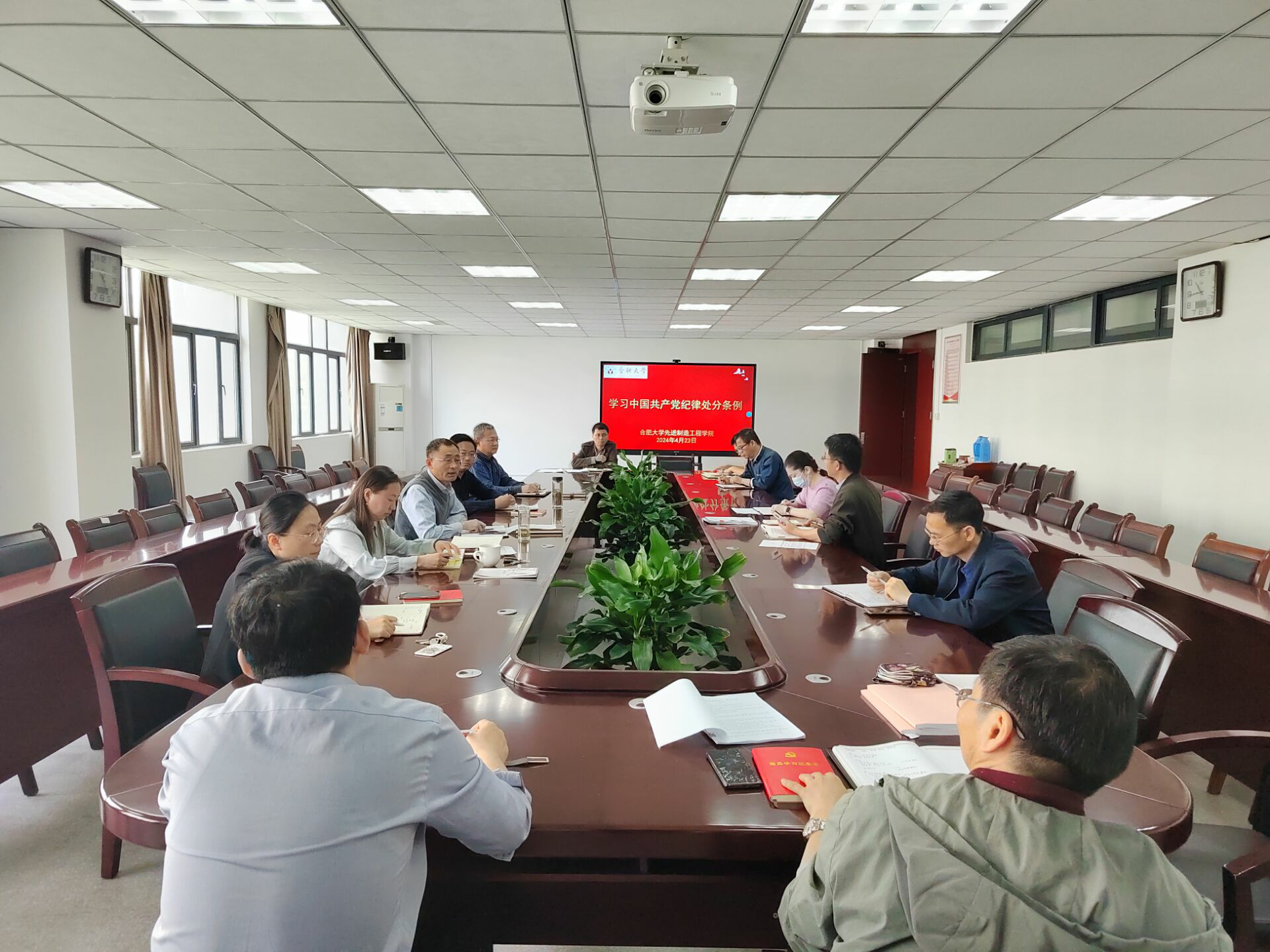 為深入學習貫徹習近平總書記關于開展黨紀學習教育的重要講話和重要指示精神,扎實開展黨紀學習教育,4月22日上午,先進制造工程學院在40#305會議室舉行黨紀學習教育讀書班第一次集中學習。院黨委班子成員、各支部書記參加會議,院黨委書記杜娟主持會議。 杜娟傳達《中共中央辦公廳關于在全黨開展黨紀學習教育的通知》和校黨委關于開展黨紀學習教育的工作部署。領學了習近平總書記關于黨紀學習教育的重要論述,以及《中國共產黨紀律處分條例》(2024版)第一編“總則”的第一章《總體要求和適用范圍》和第二章《違紀和紀律處分》。 杜娟指出,在全黨開展黨紀學習教育,是以習近平同志為核心的黨中央作出的重大決策部署,是加強黨的紀律建設、推動全面從嚴治黨向縱深發展的重要舉措,也是推動學院高質量發展、營造良好政治生態的重要保障。開展好這次黨紀學習教育,大家要不斷提高政治站位,深刻領會、精準把握開展黨紀學習教育的重要意義。準確把握任務,突出重點、有力有序推進黨紀學習教育縱深開展,注重融入日常、抓在經常,做到學習教育與中心工作兩手抓、兩促進,將黨紀學習教育的具體成果轉化為推動學院高質量發展的實際成效。 (撰稿:威力旺 一審:蔡靈美 二審:胡學友 三審:杜娟)