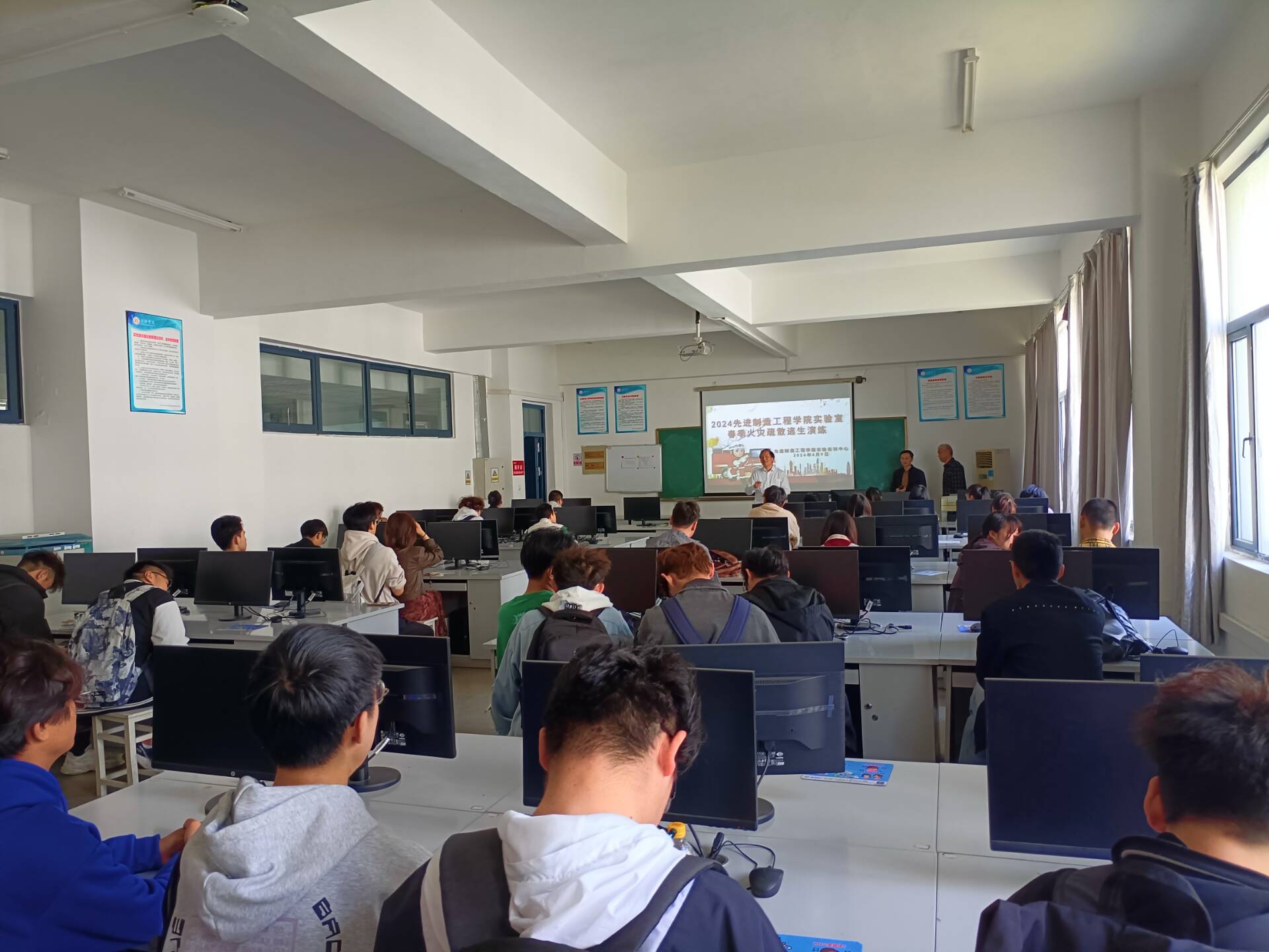 為落實消防安全主體責(zé)任,切實提高師生消防安全意識和自防自救能力,堅決防范和遏制火災(zāi)事故發(fā)生,按照學(xué)校《關(guān)于開展春季火災(zāi)疏散逃生演練活動的通知》要求,4月9日中午,先進(jìn)制造工程學(xué)院組織師生開展實驗室春季火災(zāi)疏散逃生演練活動。保衛(wèi)處周海燕科長到現(xiàn)場指導(dǎo)工作。