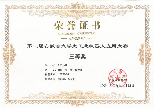 我校機械工程系于2019年9月第一次組隊參加了第二屆安徽省大學生工業機器人應用大賽,共1支參賽隊伍3人參賽;獲得省級三等獎1項。 |