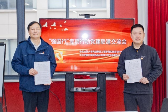 11月25日上午,合肥大學先進制造工程學院實驗實訓中心黨支部赴安徽環瑞電熱器材有限公司進行參觀交流,雙方共同舉辦了“強國行” 專項行動團隊黨建聯建交流會,深化黨建深度合作,通過校企聯動、資源整合、優勢互補,探索黨建工作與企業發展、教育事業協同共進新路徑。合肥大學先進制造工程學院黨委書記杜娟、學院黨委委員、實驗實訓中心黨支部書記高先和及支部委員一起參加共建活動。 雙方圍繞校企黨建聯建開展了座談交流,環瑞公司相關負責人詳細介紹了公司的生產運營狀況、技術研發成果以及企業文化建設等方面的成效,讓大家深入了解了企業發展態勢、發展成果。雙方重點圍繞如何使黨建工作與業務融合達到雙融雙促展開深入探討。現場,雙方黨組織簽訂“強國行” 專項行動黨建聯建協議。今后將在組織聯建、理論聯學、活動聯辦等方面推進合作,共同開展科研項目攻關,加速科技成果轉化,提升企業核心競爭力與創新能力。雙方黨員在黨建活動室共同重溫入黨誓詞。 合肥大學先進制造工程學院實驗實訓中心黨支部將立足全國高校”雙帶頭人“教師黨支部書記”強國行“專項行動團隊建設,充分發揮高校智庫資源,帶領團隊積極投身 “強國行” 專項行動。通過搭建黨建聯建平臺,雙方致力于構建聯建組織、共抓隊伍、共享資源、共謀發展的黨建工作新格局,實現黨建與業務的雙促進、雙提升,推動區域經濟社會發展。