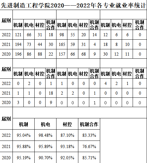 先進(jìn)制造工程學(xué)院2020—2025年各專業(yè)就業(yè)率統(tǒng)計
