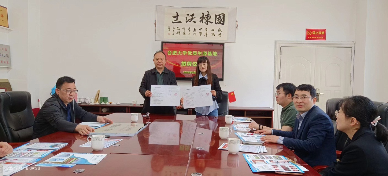 為進一步提升我校優質生源,4月17日至18日,先進制造工程學院聯合經濟與管理學院開展優質生源地共建、簽約、掛牌。先進制造工程學院副書記蔡靈美、經濟與管理學院副院長于娜、經管學院骨干教師潘娣、電子信息工程系主任張勝、智能制造專業主任金飛翔等一行人員前往渦陽縣第一中學、渦陽縣育萃中學兩所優質生源地進行簽約、掛牌。優質生源基地學校領導對合肥大學一行人員來訪表示熱烈的歡迎。蔡靈美副書記和于娜副院長對優質生源基地學校長期以來對我校發展的支持及輸送了一批批優秀學生表示衷心感謝。