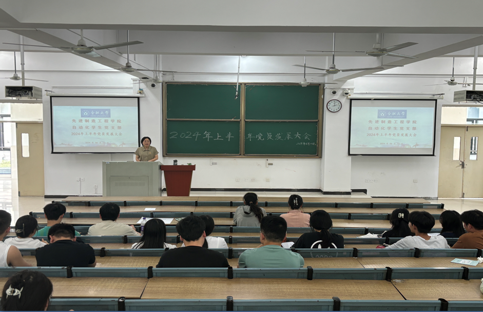 先進制造工程學院自動化學生黨支部2024年上半年黨員發展大會于6月12日在38棟2階梯教室舉行,學院黨委副書記蔡靈美、支部書記梅志強、全體黨員及群眾代表參加此次會議。 會上,院黨委副書記蔡靈美勉勵全體黨員要加強理論學習,在實踐中提升綜合素養,不斷成長,做到學思踐悟,牢記初心使命,在細照篤行中修煉自我。