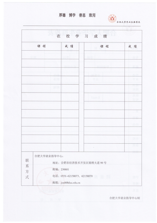 合肥大學畢業生推薦表