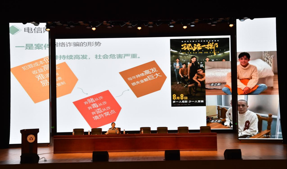 隨后,安全教育環節正式展開。鄭警官結合真實案例,生動剖析校園常見安全風險與各類詐騙手段,用通俗易懂的語言讓新生直觀認識到安全隱患的危害性;李處長則深入淺出講解校園內可能存在的安全漏洞及防范要點,從宿舍安全、出行安全到財產安全,全方位為新生構建校園安全“防護網”,助力新生在安全舒心的環境中開啟求學路。