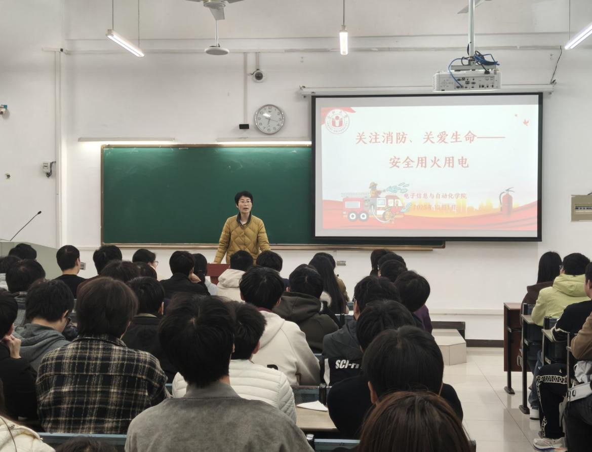 為進一步強化學生消防安全意識,切實提升對用火用電風險的防范能力與應急處置水平,筑牢校園安全防線,12月1日18:30,電子信息與自動化學院于35棟101教室組織開展消防安全專題培訓。本次培訓特邀學校保衛處副處長周海燕擔任主講人,學院黨委書記毛小芳主持培訓,各班級班長及生活委員全程參與學習。