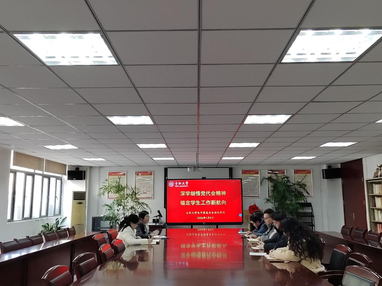 為深入學習貫徹中國共產黨合肥大學第一次黨員代表大會精神,將大會部署轉化為推動學生工作高質量發展的具體行動,2026年1月5日,我院在38棟305會議室召開學生工作專題例會。電子信息與自動化學院黨委書記毛小芳、院黨委副書記汪娜及輔導員參加會議,會議由學院黨委副書記汪娜主持。