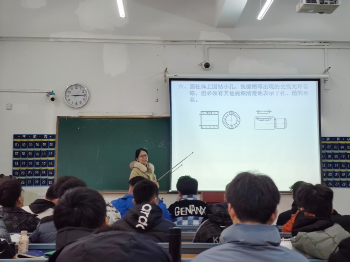 “每天最快樂的事情就是上課。”采訪伊始,劉丹萍老師親切地笑著說道。劉老師所教授的《機械產(chǎn)品表達》課程,旨在培養(yǎng)學生掌握繪制和閱讀工程圖樣的基礎(chǔ)技能,而想要學好其中的難點,繞不開投影法。投影是什么?大到航空航天制造、小到螺母配件生產(chǎn)都與其密切相關(guān)。將三維結(jié)構(gòu)展現(xiàn)在二維圖紙上,需要抓住每個視圖中的主要特征并將復雜的線條直觀化,這對空間想象能力要求極高。和大多數(shù)工科課程一樣,起初同學們并沒感受到投影法與他們習以為常的思政課有什么關(guān)系,甚至還因為內(nèi)容抽象產(chǎn)生了畏難情緒。