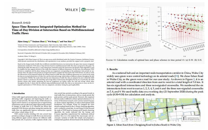 “光有熱愛還遠遠不夠,還需要知識和經驗的不斷積累。”詹學娟在科研道路上敢于挑戰自我,收獲頗豐。她以第二作者(導師第一作者)發表學術論文7篇(SCI檢索3篇,EI檢索3篇,學報1篇),其中以交通信號控制為研究方向的論文《基于多維交通流的交叉口時段劃分與時空資源一體化優化方法》發表在運輸研究領域國際期刊《先進運輸雜志》(Journal of Advanced Transportation,IF=1.983)上,以交叉口不同控制流向的交通流量變化規律為依據,提出了一種基于多維度交通流量數據的用于交叉口TOD(time-of-day)劃分的時空資源一體化優化方法。驗證表明,采用交通流量的維度越多,交叉口全天車輛總延誤和平均延誤越低,特別是進一步優化車道功能后成效更佳。
