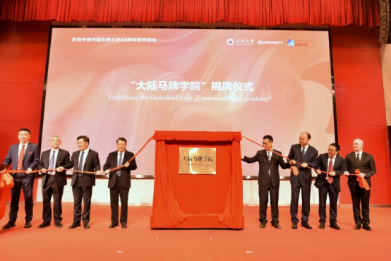 On October 22, 2025, the celebration marking the 40th anniversary of the joint establishment of Hefei UniversityHFU by China and Germany, as well as the 10th anniversary of the dual-system “Continental Class” program was held at Hefei University.  Luo Yunfeng, Mayor of Hefei City, Wang Xiaoji, General Manager of Continental Tires (China) Co., Ltd., and HFU principals attended the event, who jointly signed the agreement and unveiled the plaque for the Continental Tires Academy.