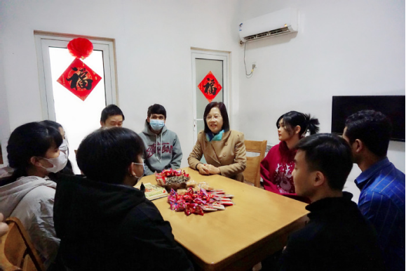 On January 31, Chinese New Year’s Eve (the Year of Tiger), HFU President Wu Chunmei, together with the staff of Logistics Group and the Institute of International Education, calls on HFU international students on campus, sending them festival greetings.