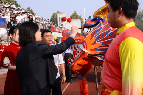 Various sports clubs brought wonderful artistic performances for the teachers and students. Dragon-lion Dance and martial arts were first performed. HFU president, Wu Chunmei dotted the eyes of the Dragon and Lion. Dance, yoga, and cheerleading interpreted the beauty of youth, rhythm and vitality, fully demonstrating the effectiveness of PE teaching.