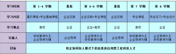 實踐項目的選擇由校、企雙導師共同協商,對所選實踐項目的難度和廣度進行階段分解,保證在畢業實習和畢業設計項目上能夠對前期的實踐項目繼續延伸提高,并且結合后續的理論學習后,實現了第三階段的校企協同實施,提升了專業能力。為強化實踐能力,第四和第五學期及第六和第七學期的暑期也全部安排進行實踐教學。