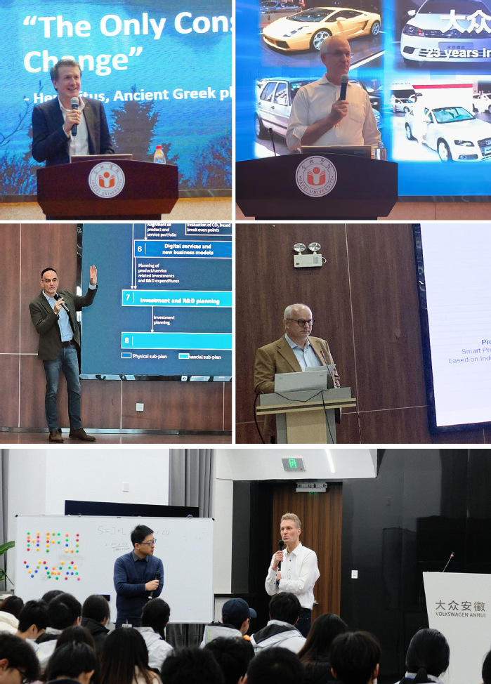 Im ersten Semester des akademischen Jahres 2023-2024 hielten das Volkswagen College und Volkswagen Anhui gemeinsam fünf theoretische Vorlesungen und kognitive Praktikumsaktivit?ten für Gastprofessoren von Unternehmen ab. Dr. G. Wandi, Gastprofessor von Volkswagen Anhui und CEO von Volkswagen Anhui, Dr. Hayogen, Chief Financial Officer, Dr. Lu Ermann, Chief Technology Officer, Herr Gao Lefu, Chief Digital Officer, und Herr Schneider, Chief Manufacturing Officer, hielten gemeinsam wunderbare Vortr?ge für die Studierenden.