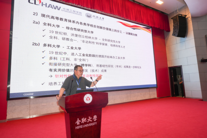 Feng Xiao, Dekan der Chinesisch-Deutschen Hochschule für Angewandte Wissenschaften (CDHAW)der Tongji Universit?t, pr?sentierte einen Bericht mit dem Titel ?Integration von Wissenschaft und Technik, Zusammenführung von Industrie und Bildung: Aufbau von Mechanismen für eine gegenseitig unterstützende und interaktive Innovation in Hochschulen“.