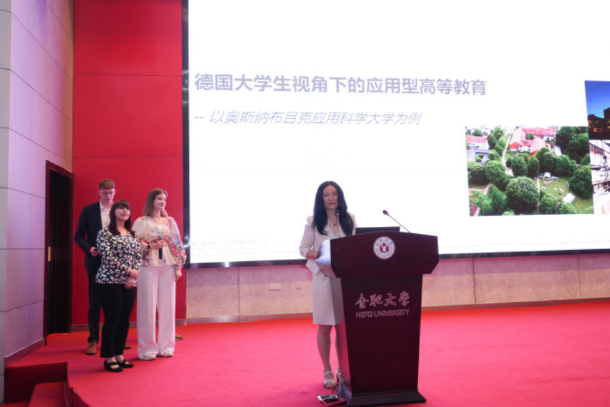 Professor Chen Ying von der Hochschule Osnabrück und ihr Team analysierten das Thema ?Angewandte Hochschulbildung aus der Sicht deutscher Studenten“ und pr?sentierten die Entwicklungsergebnisse der deutsch-chinesischen dualen Hochschulbildung.