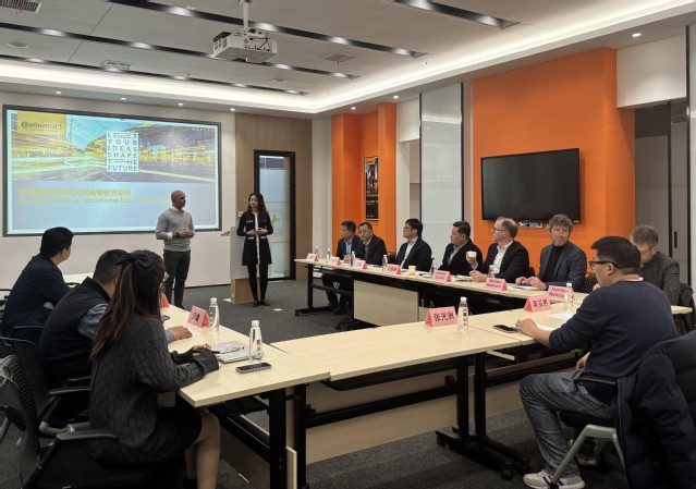 在座談環(huán)節(jié),王曉峰與財(cái)務(wù)總監(jiān)周淵、人力資源總監(jiān)亞歷克西斯·格羅斯Alexis Gross就深入推進(jìn)大陸班共建、校企資源對(duì)接展開(kāi)交流。王曉峰指出,合肥大學(xué)將持續(xù)優(yōu)化“專業(yè)鏈對(duì)接產(chǎn)業(yè)鏈”機(jī)制,總結(jié)十年校企共建大陸班的經(jīng)驗(yàn),進(jìn)一步增強(qiáng)雙元制合作培養(yǎng)高水平應(yīng)用型人才的優(yōu)勢(shì),破解校企合作人才培養(yǎng)的難點(diǎn)和痛點(diǎn)。周淵重點(diǎn)介紹了大陸集團(tuán)“扎根市場(chǎng)、服務(wù)市場(chǎng)”本土化戰(zhàn)略、四期工廠智能化產(chǎn)線布局等規(guī)劃。亞歷克西斯·格羅斯分享了企業(yè)人才評(píng)價(jià)體系,強(qiáng)調(diào)“大陸班”學(xué)生在跨文化溝通、工程實(shí)踐能力等方面的優(yōu)勢(shì)。