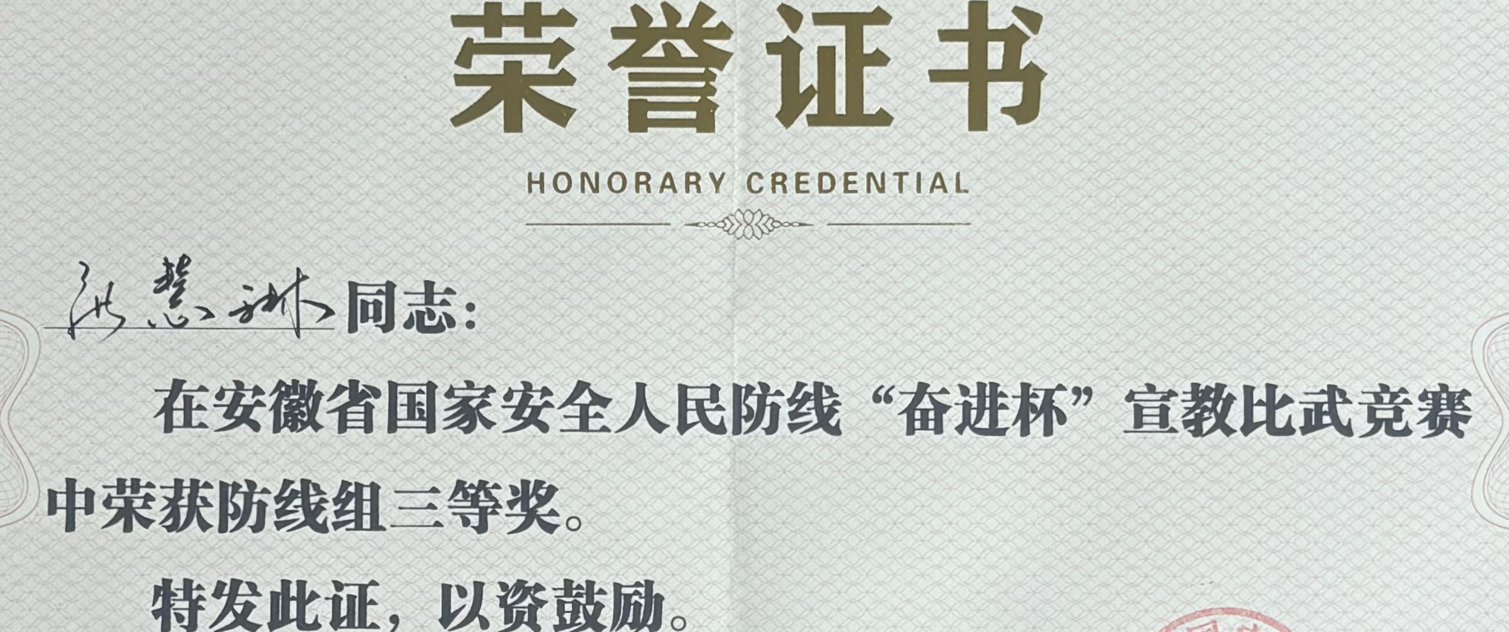 近日,首屆安徽省國家安全人民防線“奮進杯”宣講比武競賽圓滿落下帷幕。我校教師張惠琳憑借扎實的理論知識和出色的現(xiàn)場表現(xiàn),榮獲防線組三等獎。