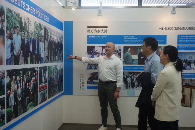 代表團(tuán)會后參觀了中德共建合肥大學(xué)展覽,走進(jìn)大陸班教室與學(xué)生們進(jìn)行交流互動。