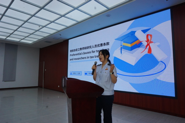 活動中,稅務干部解讀了稅收協定基本概念、作用及與高校師生相關的個稅、企稅優惠政策等,分享了跨境涉稅典型案例,并通過互動問答、現場咨詢為師生答疑解惑,發放宣傳資料。