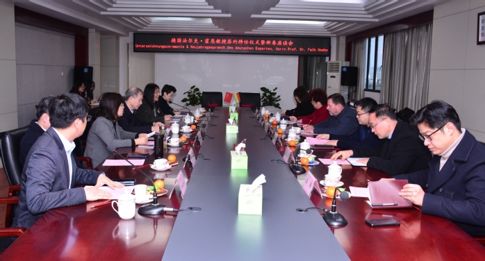 座談會還邀請了在校工作的德國專家湯衛思教授(Thomas Weise)參加,與會人員圍繞專業建設、研究生培養、教育教學、文化交流等進行了深入的探討交流。